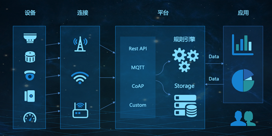一种以技术为中心的产品,是可以交付的、与行业无关的、可扩展的核心物联网平台中间件,用于为客户构建一组互联或独立的物联网解决方案。物联网中台将物联网设备和应用系统连接起来,提供低功耗、低时延、高安全、高可信、高并发的极简联接服务,致力于“联万物、+智能、为行业”,聚合产业生态,使能客户商业成功。到2026年,物联网平台的收入预计将增长到634亿美元,物联网中台是需求最高的企业物联网平台之一。